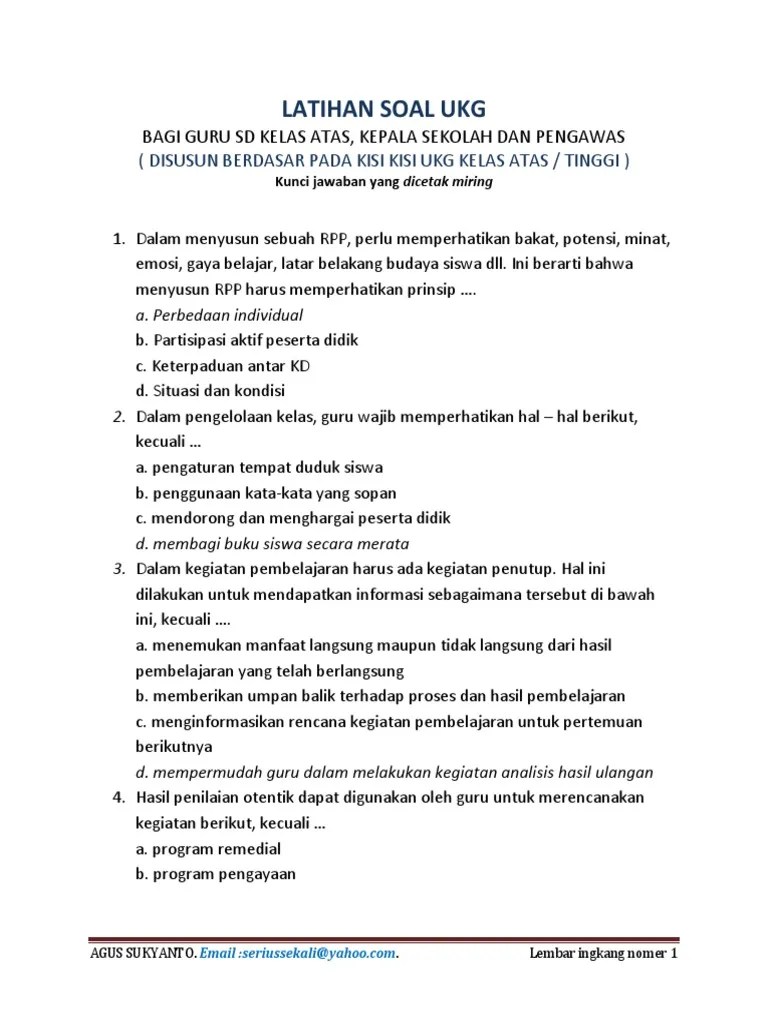 Pe,mbatasan masalah, penyusunan hipotesa, pengumpulan data, pengetasan hip.otesa, interpretasi hasil tes. Pada waktu sebelumnya, sudah menyebarkan soal latihan ukg untuk guru kelas sd dan guru pai sd. Bersikap inklusif, bertindak obyektif serta . Kumpulan soal yng bisa dipakai guru pai sd bagi atau bisa juga dikatakan untuk latihan ukg yang dengannya disertai kunci jawabannya. Prediksi soal ukg online saat ini gencar dicari oleh kepala sekolah dan guru atau.